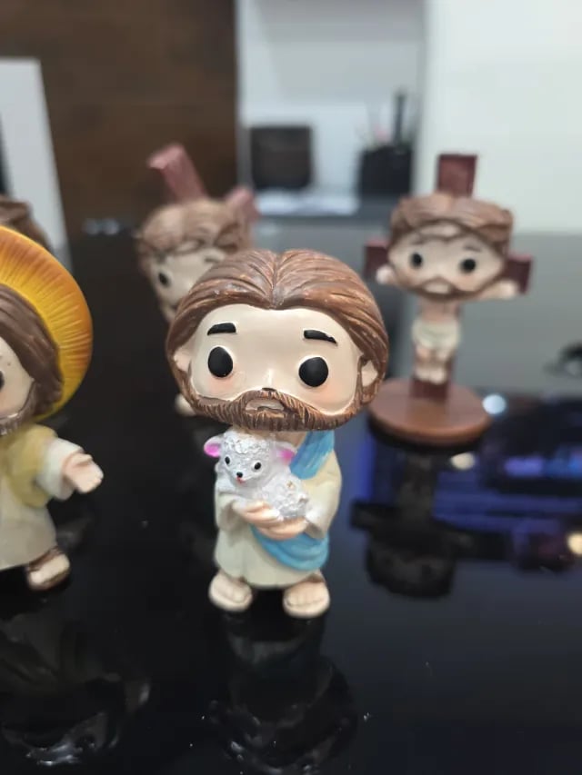 - Handcrafted Design: Each figurine is carefully molded and painted to capture the essence of biblical scenes in a modern, stylized form.